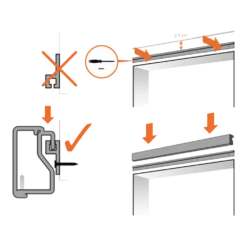 Het kattenstaartgordijn is bevestigd op een grijze kunststof strip. Met de twee bijgeleverde oogjes kan het gordijn op het kozijn bevestigd worden door middel van schroeven of haakjes (niet meegeleverd). Wanneer haakjes gebruikt worden kan het gordijn ook weer eenvoudig worden verwijderd in de wintertijd.