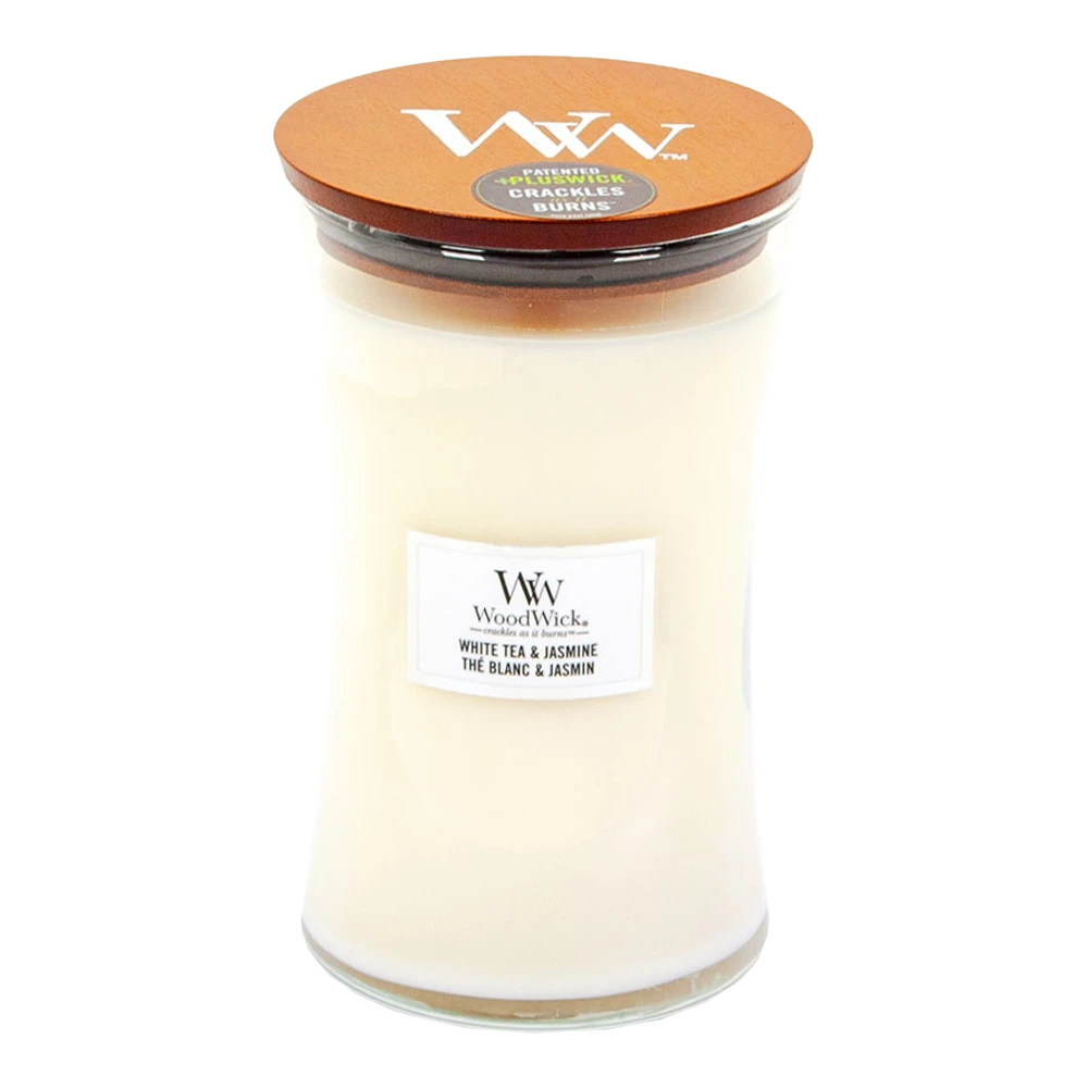 Woodwick White Tea & Jasmine Large Candle – Geurkaars